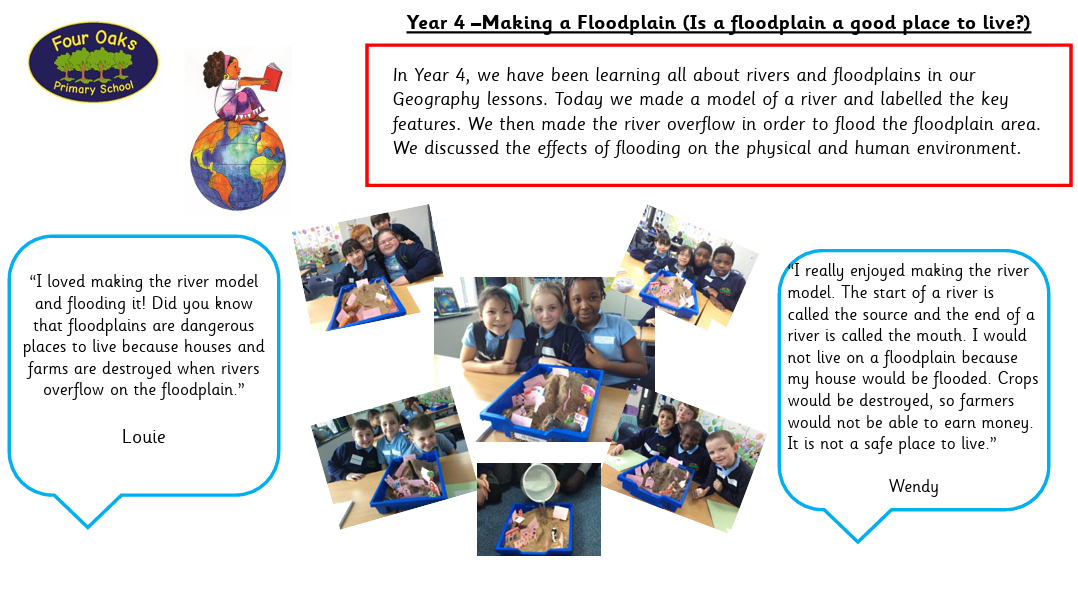 At Four Oaks we are geographers! We want our children to love Geography. We want them to have no limits to what their ambitions are and grow up enabled to become cartographers, town planners, conservationists or weather forecasters. We want them to embody our core values: we all “strive to be the best we can be”. We want our children to remember their Geography lessons in our school, to cherish these memories and embrace the geographical opportunities they are presented with!