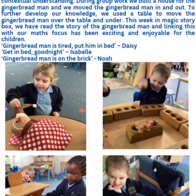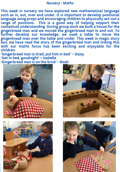 The Nursery curriculum focuses on developing children’s early understanding of numbers, shapes, and patterns through play, exploration, and everyday experiences.
