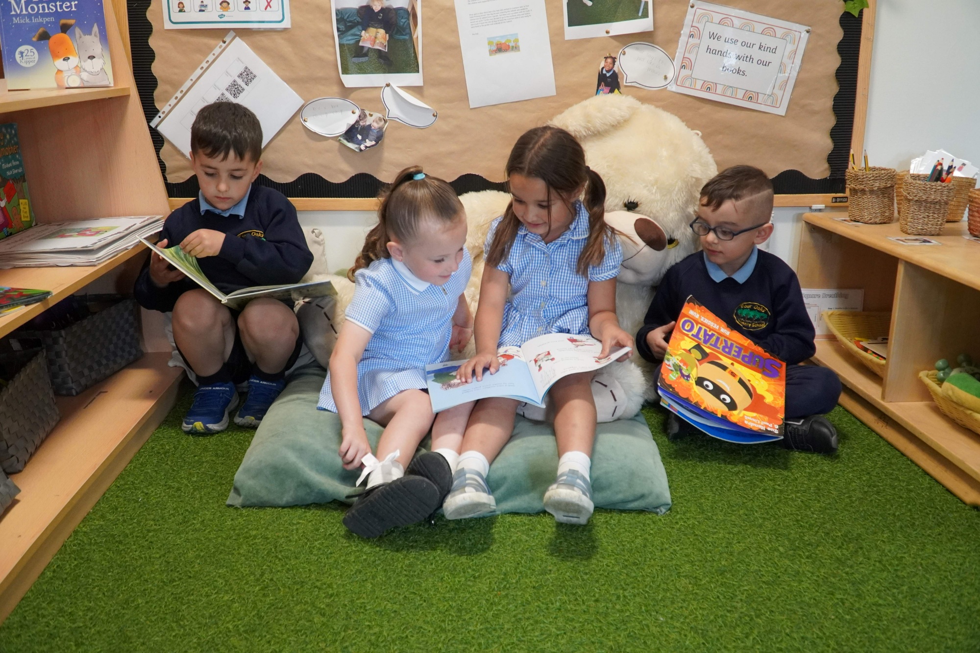 Every member of staff at Four Oaks Primary School is dedicated to ensuring your child makes the best possible progress. Through purposeful monitoring, evaluation and assessment, we ensure that children’s learning follows the coherent learning sequences that we have planned in all areas of our curriculum. Children develop core knowledge and skills in all subjects and apply these skills learnt in other aspects of life and learning. They achieve well, fulfilling their potential and are fully prepared for the next stage in their education journey. Children read widely and fluency and comprehension are highly valued and taught.