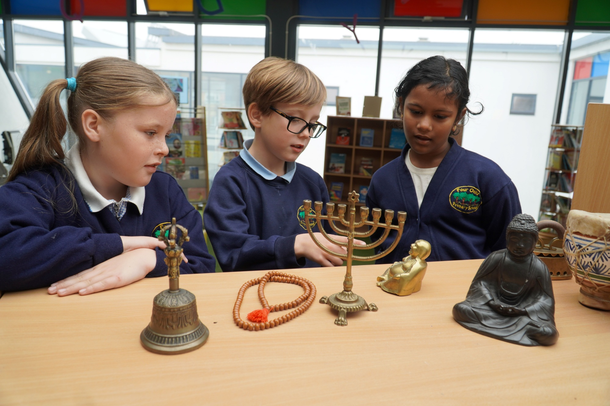 At Four Oaks Primary School, Religious Education plays a vital role in helping pupils understand the beliefs, values, and traditions that shape communities both locally and globally. Our RE curriculum inspires curiosity, respect, and open-mindedness, encouraging children to explore faiths and world views with empathy and understanding. Through engaging lessons, interactive experiences, and links with our local church, pupils gain a deeper awareness of how religious beliefs influence everyday life and personal values. We encourage them to reflect on their own ideas, ask thoughtful questions, and consider the perspectives of others, fostering both critical thinking and mutual respect.